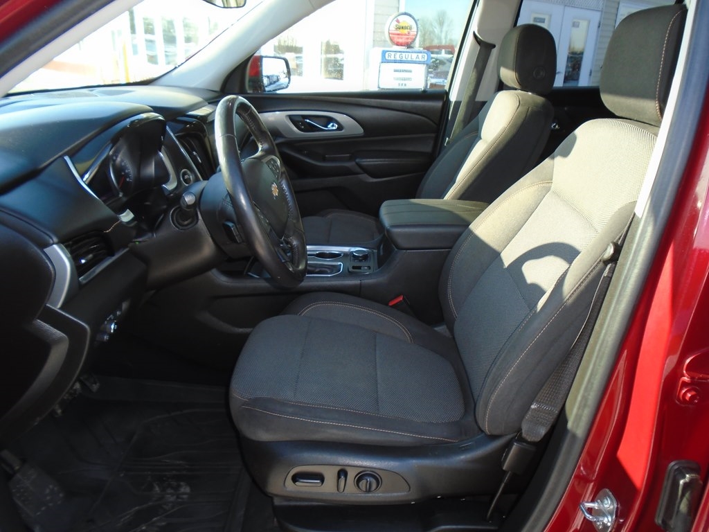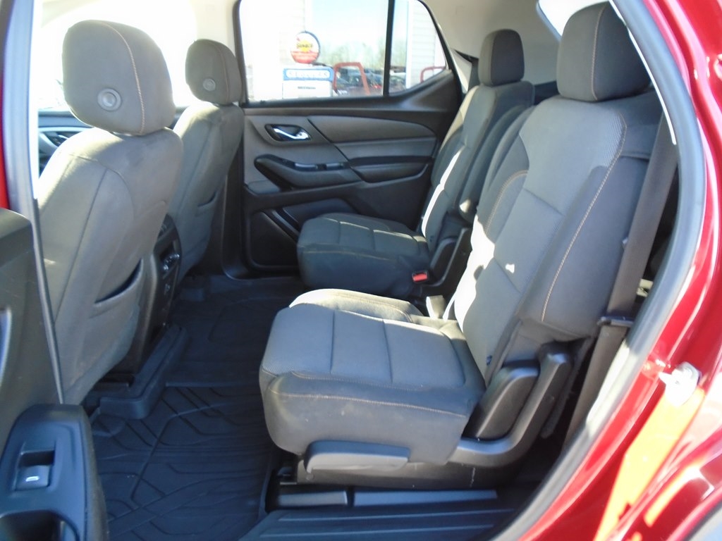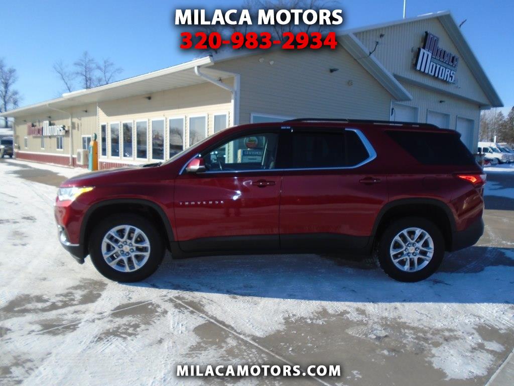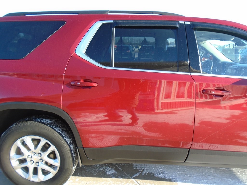 Drive our 2021 Chevrolet Traverse LT Cloth AWD in Glory Red Tintcoat, and your family moves forward in style and comfort. Motivated by a 3.6 Liter V6 delivering 310hp paired to a 9 Speed Automatic transmission for excellent everyday capability. Tow your toys, take the kids to school, and easily commute in this All Wheel Drive SUV that returns nearly 27mpg on the highway and rewards you with HID headlamps, fog lights, roof rails, dual-exhaust outlets, 18-inch alloy wheels, and heated power mirrors with built-in turn signals. The roomy cabin of our LT Cloth fits seven people, helping to keep them happy with premium-cloth seats, eight-way power for the driver, second-row captain's chairs, a flexible third row, a leather-wrapped steering wheel, tri-zone automatic climate control, cruise control, and smart infotainment technology that's anchored by a 7-inch touchscreen. There's plenty of versatile cargo space, too! Chevrolet's family-friendly approach to safety shows through with a rearview camera, tire-pressure monitoring, stability/traction control, ABS, advanced airbags, and more. Make the most of your next trip in our terrific Traverse LT Cloth! Save this Page and Call for Availability. We Know You Will Enjoy Your Test Drive Towards Ownership!