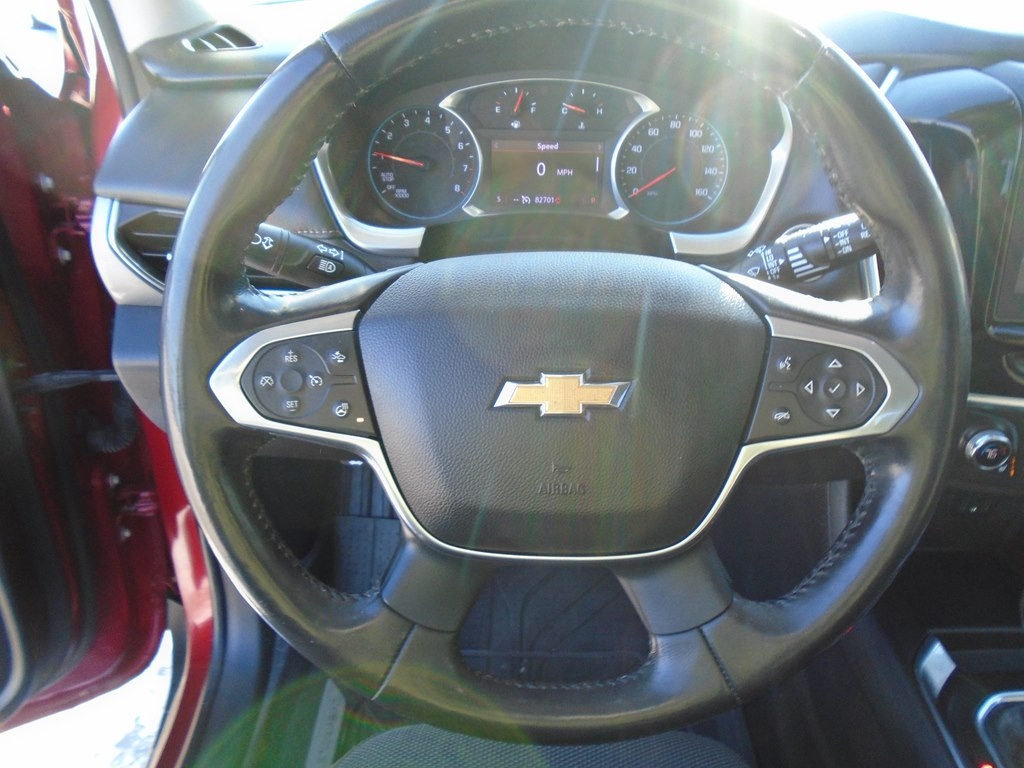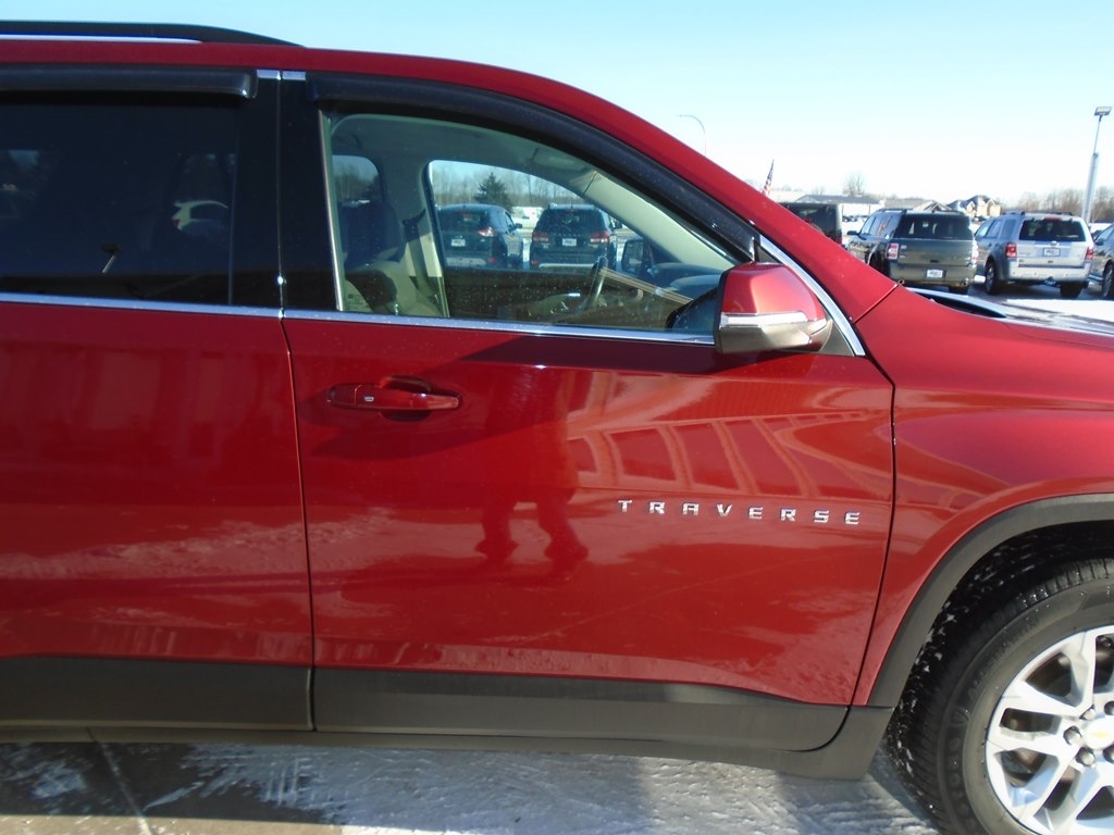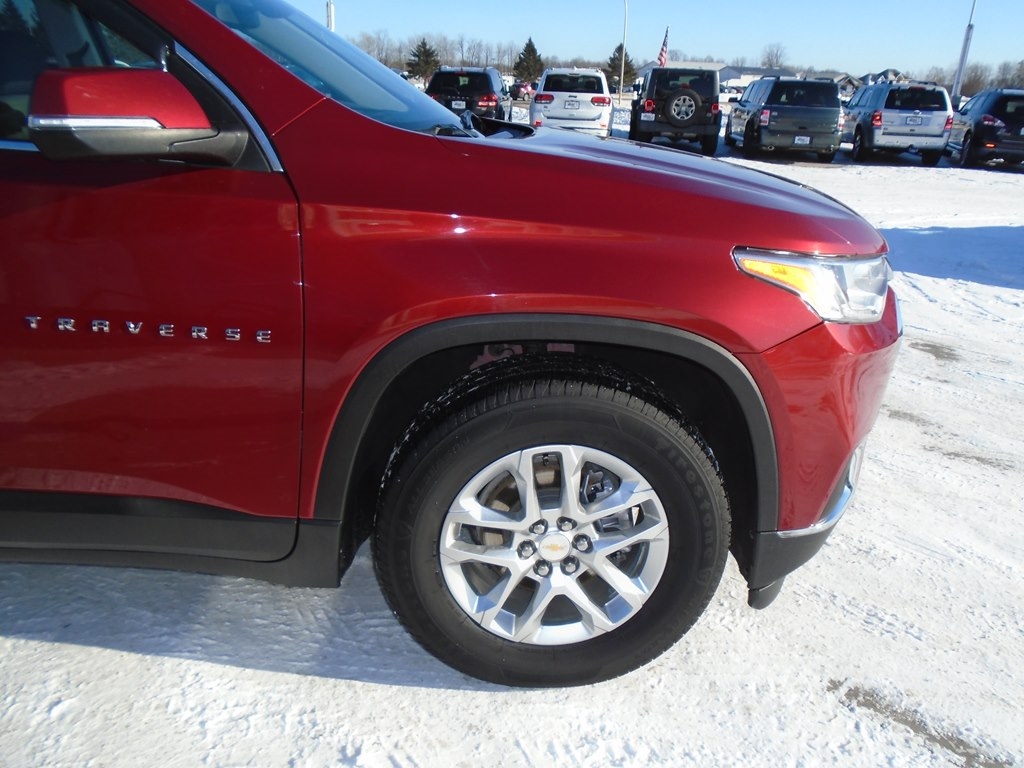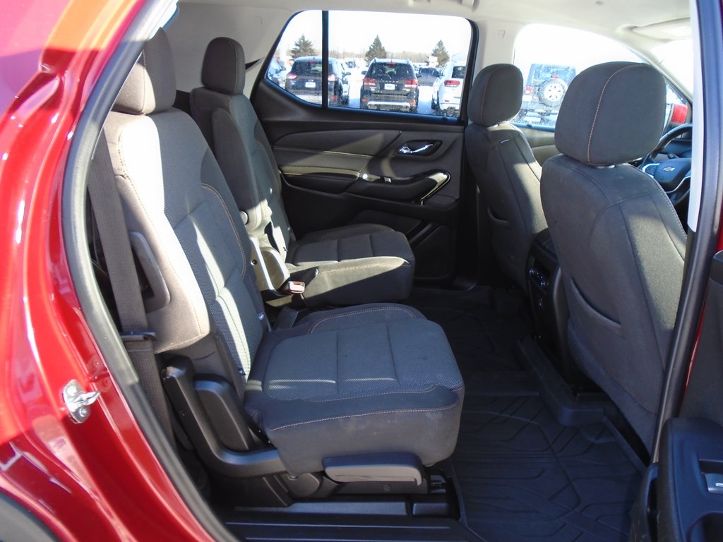 Drive our 2021 Chevrolet Traverse LT Cloth AWD in Glory Red Tintcoat, and your family moves forward in style and comfort. Motivated by a 3.6 Liter V6 delivering 310hp paired to a 9 Speed Automatic transmission for excellent everyday capability. Tow your toys, take the kids to school, and easily commute in this All Wheel Drive SUV that returns nearly 27mpg on the highway and rewards you with HID headlamps, fog lights, roof rails, dual-exhaust outlets, 18-inch alloy wheels, and heated power mirrors with built-in turn signals. The roomy cabin of our LT Cloth fits seven people, helping to keep them happy with premium-cloth seats, eight-way power for the driver, second-row captain's chairs, a flexible third row, a leather-wrapped steering wheel, tri-zone automatic climate control, cruise control, and smart infotainment technology that's anchored by a 7-inch touchscreen. There's plenty of versatile cargo space, too! Chevrolet's family-friendly approach to safety shows through with a rearview camera, tire-pressure monitoring, stability/traction control, ABS, advanced airbags, and more. Make the most of your next trip in our terrific Traverse LT Cloth! Save this Page and Call for Availability. We Know You Will Enjoy Your Test Drive Towards Ownership!
