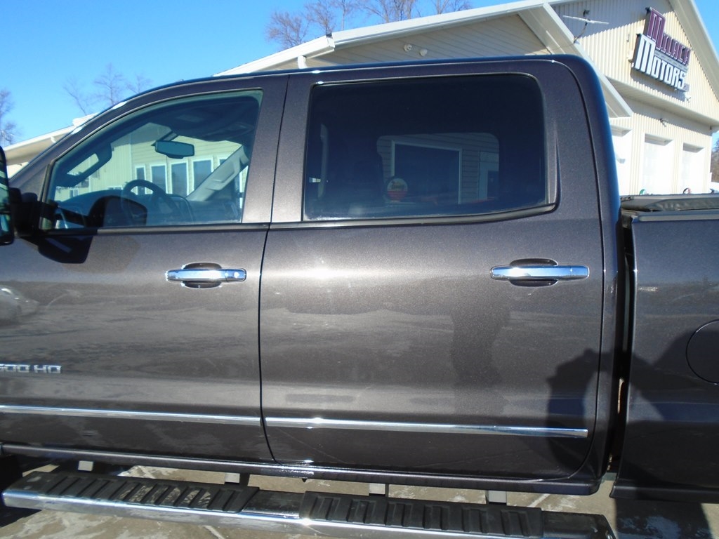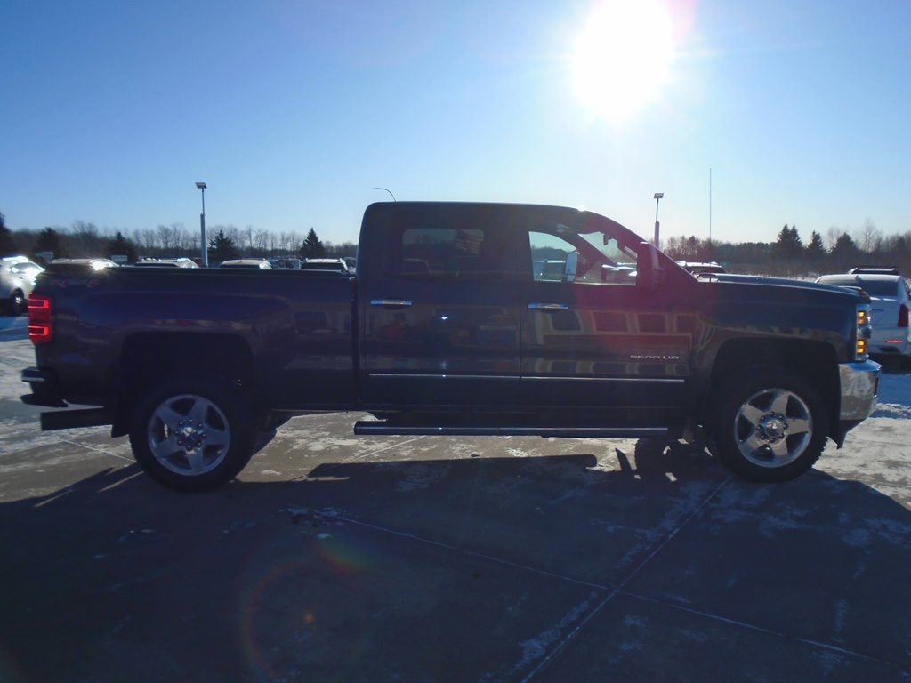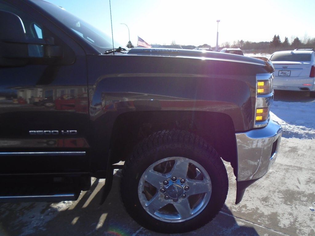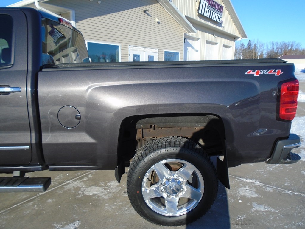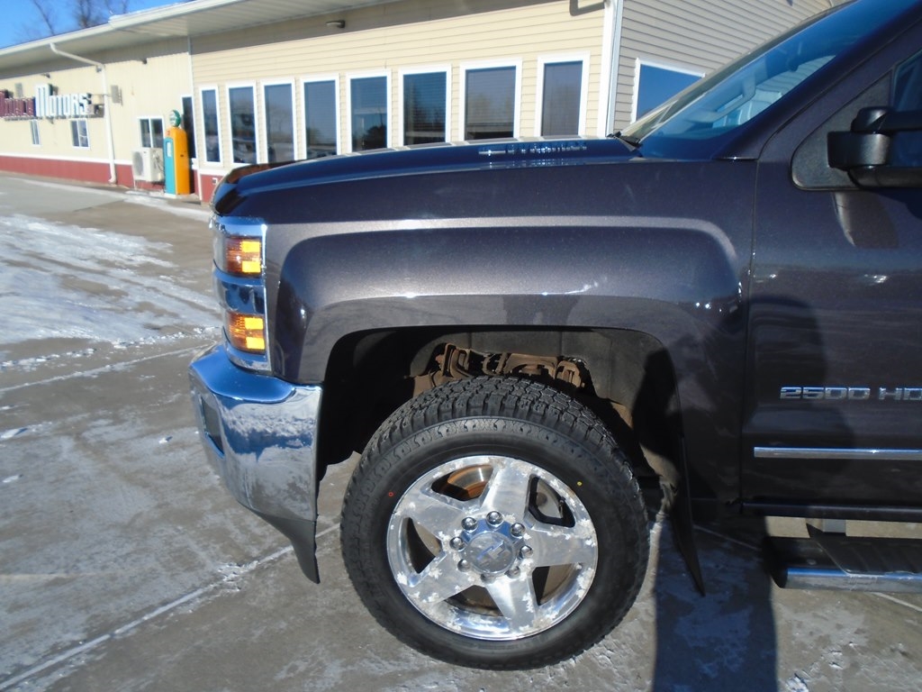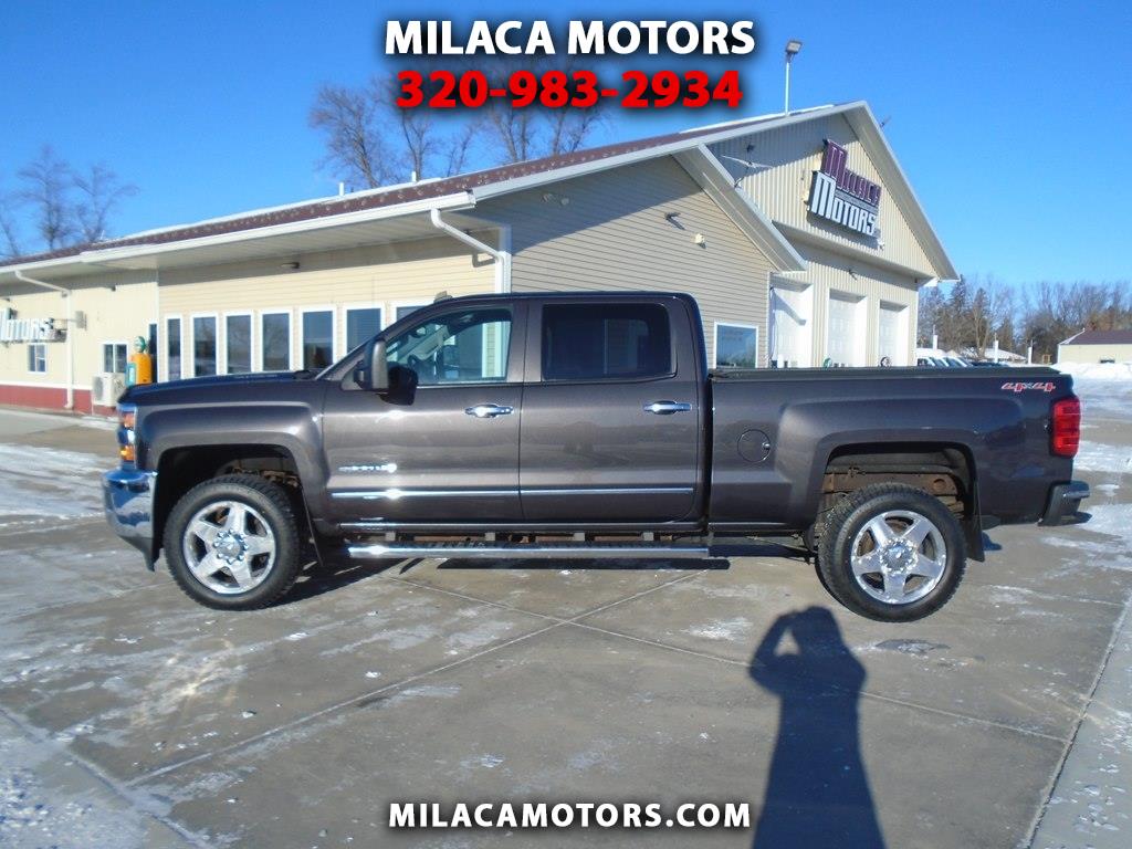 Proven power, unmatched comfort, and capability blend seamlessly in our 2015 Chevrolet Silverado 2500 LTZ Crew Cab 4X4, shown in Iridium Metallic. Powered by a TurboCharged 6.6 Liter Duramax Diesel V8 generates 397hp connected to a purpose-built 6 Speed Allison 1000 Automatic transmission that helps this able-bodied machine to pack a payload of up to 4,212 pounds. This Four Wheel Drive team is ready to work for you. Chevrolet heavy-duty automatic locking rear differential and integrated brake controller supply reinforcement when towing enhanced by 18-inch polished aluminum wheels and chrome accents. Imagine yourself sliding behind the wheel of our LTZ onto custom leather heated seats. With the Chevrolet MyLink color touch audio system and voice-activated technology for radio and phone, you'll feel like the king of the road as you take on your next task. As always, Chevrolet safety features are all in place for substantial peace of mind. Daytime running lamps, a rear vision camera, tire pressure monitoring, StabiliTrak, trailer sway control, and hill start assist are just a sampling of the advanced safety features that protect you. Go the distance in all the comfort and capability only Silverado can provide. This Silverado 2500 LTZ is the top-level choice to get your jobs done right. Save this Page and Call for Availability. We Know You Will Enjoy Your Test Drive Towards Ownership!