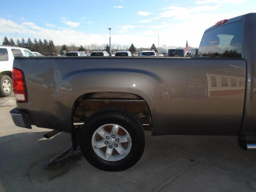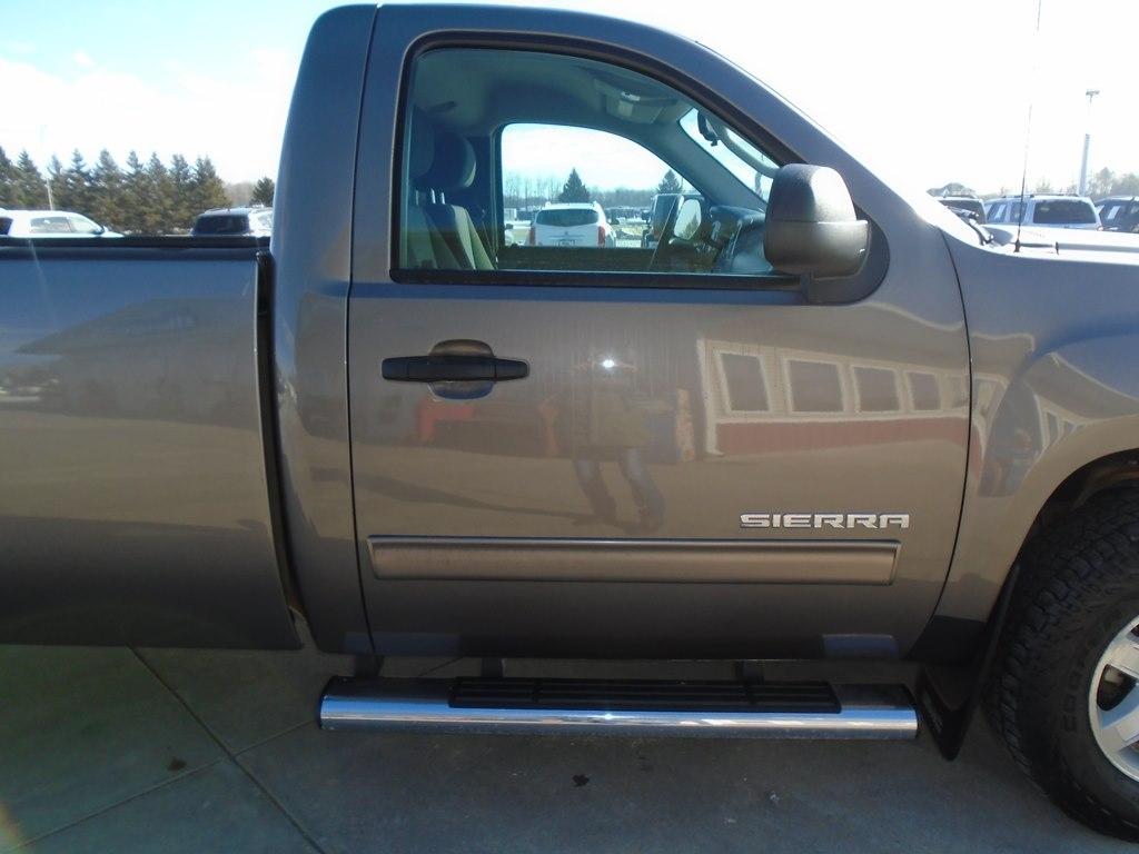 Our 2013 GMC Sierra 1500 SLE Regular Cab 4X4 long Box is proudly displayed in beautiful Magna Steel Metallic. 4owered by a 5.3 Liter Vortec V8 that supplies 315hp paired with a 4 Speed Automatic transmission ready for the road. This Four Wheel Drive truck shows off coil-over-shock front suspension to ease you down the road, plus offers nearly 21mpg on the highway, showing off attractive wheels. Climb inside the SLE interior and take in its striking look and feel. This quality, do-anything, go-anywhere truck boasts upgraded interior comforts of premium cloth seats, steering wheel cruise controls, power windows, and door locks. Add power-heated outside mirrors and a great sound system, and know you are smiling. Additionally, the well-known GM safety features are in place for your security. With available OnStar, our amped-up truck will ensure it takes care of the projects you have in the works while scoring mega-comfort. Get the job done right with the security, performance, and comfort that only come from the Sierra 1500 SLE. Don't delay. Save this Page and Call for Availability. We Know You Will Enjoy Your Test Drive Towards Ownership!