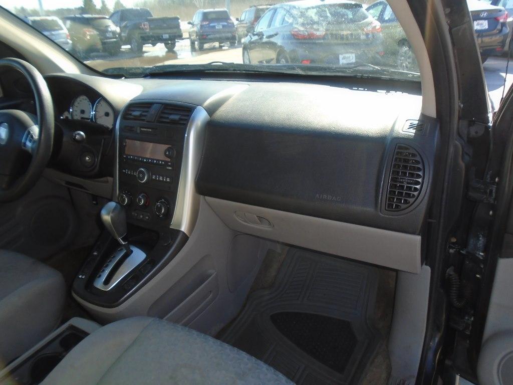 Our 2006 Saturn VUE in Black stands tall and serves up some stiff competition in the compact SUV market! Powered by a 2.2 Liter 4 Cylinder that offers an impressive 250hp paired with a 4 Speed Automatic transmission. Our Front Wheel Drive is enjoyable to drive, while showing off unique styling and high-quality finishes. A walk around the outside reveals chrome accents, roof rails, privacy glass, and alloy wheels. Once inside the VUE, you will notice the soft touch front bucket seats, and a reclining rear bench seat making this a perfect ride, with the fit for five and gives your rear passengers plenty of legroom. Power accessories, cruise and audio controls on the leather-wrapped steering wheel, a great sounding audio system with CD player, auxiliary input, and a spacious cargo area will make you smile each time you are behind the wheel. Safety features of the Saturn include ABS, daytime running lamps, and airbags to help keep you secure on the road. Our VUE offers comfort, style, and fuel efficiency. Save this Page and Call for Availability. We Know You Will Enjoy Your Test Drive Towards Ownership!