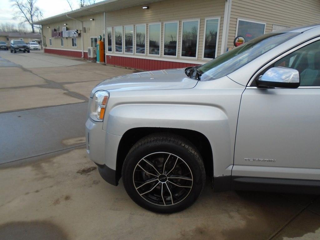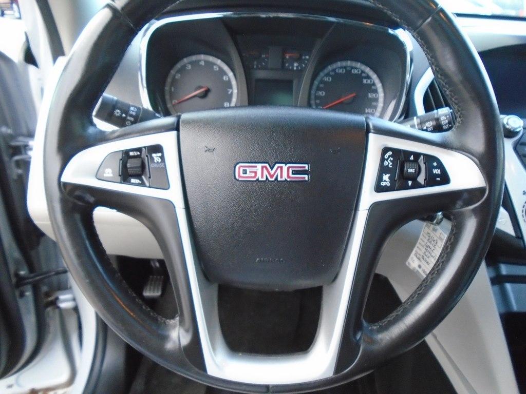 Our impressive 2012 GMC Terrain SLT-1 AWD is shown in a glorious Switchblade Silver Metallic. Motivated by a 3.0 Liter V6 that delivers 264hp connected to a 6 Speed Automatic transmission. This All Wheel Drive SUV is sure-footed in almost any road condition while delivering nearly 24mpg on the highway and looks impressive with SLT wheels, tinted glass, and muscular lines. The SLT-1 adds automatic climate control, a power leather driver's seat with power lumbar adjustment, a leather-wrapped steering wheel, a premium eight-speaker Pioneer audio system with Bluetoothr integrated into a beautiful color touchscreen that lets you access your phone plus, MP3, USB, or AUX. Listening pleasures are right at your fingertips. The ambient lighting package adds both comfort and luxury as the remote starter, and the backup camera contributes to safety and convenience. This GMC offers ABS, stability/traction control, front-seat side-impact airbags, side curtain airbags, and OnStar! This Terrain SLT-1 is the SUV you have been looking for! Save this Page and Call for Availability. We Know You Will Enjoy Your Test Drive Towards Ownership!