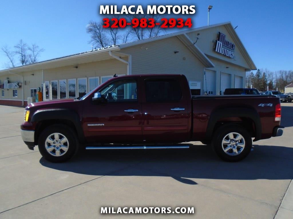 Our 2013 GMC Sierra 1500 SLE Crew Cab 4X2 is proudly displayed in beautiful Sonoma Red Metallic. Powered by a 5.3 Liter Vortec V8 that supplies 315hp paired with a 4 Speed Automatic transmission that is ready for the road. This Rear Wheel Drive truck shows off coil-over-shock front suspension to ease you down the road, plus offers nearly 21mpg on the highway, showing off attractive wheels. Climb inside the SLE interior and take in its striking look and feel. This quality, do-anything, go-anywhere truck boasts upgraded interior comforts of premium cloth seats, steering wheel cruise controls, power windows, and door locks. Add power-heated outside mirrors and a great sound system, and know you are smiling. Additionally, the well-known GM safety features are in place for your security. With available OnStar, our amped-up truck will ensure it takes care of the projects you have in the works while scoring mega-comfort. Get the job done right with the security, performance, and comfort that only come from the Sierra 1500 SLE. Don't delay. Save this Page and Call for Availability. We Know You Will Enjoy Your Test Drive Towards Ownership!