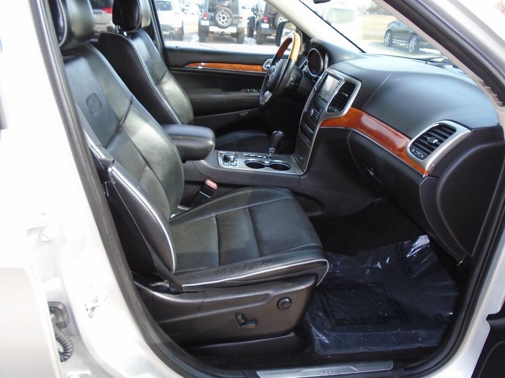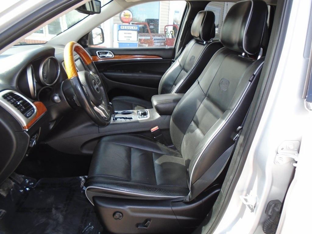 Boasting amazing performance and style, our 2013 Jeep Grand Cherokee Overland 4WD turns heads in Bright Silver Metallic! Fueled by a 5.7 Liter HEMI V6 that delivers 360hp paired with a responsive 5 Speed Automatic transmission and Quadra-Lift air suspension. This Four Wheel Drive SUV will reward you with nearly 20mpg on the highway while showing off a confident stance, panoramic sunroof, chrome trim, power liftgate, and great-looking wheels. A haven of comfort and craftsmanship, the Overland cabin offers many amenities. Enjoy the sensation of heated/cooled leather seats and set the dual-zone automatic climate control. Staying seamlessly connected is easy thanks to the prominent touchscreen, navigation, premium audio, and Bluetoothr. Drive confidently, knowing your Jeep has earned top safety scores with innovative technologies designed to protect you. Endowed with all the creature comforts you desire, this capable and versatile Grand Cherokee Overland practically calls your name! Save this Page and Call for Availability. We Know You Will Enjoy Your Test Drive Toward Ownership!