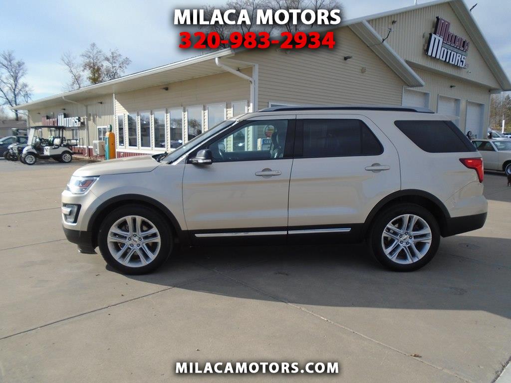 With smart design and engineering, our White Gold 2017 Ford Explorer XLT 4WD is a terrific choice. Powered by a 3.5 Liter V6 offering 290hp paired with a 6 Speed SelectShift Automatic transmission. This Four Wheel Drive SUV delivers responsive steering and smooth handling that will have you looking for reasons to get out and find adventure while offering nearly 24mpg on the highway while shining bright with attractive wheels, privacy glass, a distinct grille, fog lamps, a sunroof, and LED signature lighting. You'll appreciate XLT's Intelligent Access with a pushbutton start, a reverse sensing system, heated front seats, Navigation, and a rearview camera. Voice commanded Sync 3 with a prominent display lets you use your voice to make a call, listen to music, and select mobile apps with Sync AppLink so you can keep your eyes on the road and your hands on the wheel. Ford earned top ratings in safety, and it's easy to see why with ABS, advanced airbags, SOS post-crash alert, roll stability control, and tire pressure monitoring are just a few of the features that keep you and your passengers safe. With a fresh, modern style and legendary capability, our family-friendly Explorer XLT will serve you well! Save this Page and Call for Availability. We Know You Will Enjoy Your Test Drive Towards Ownership!